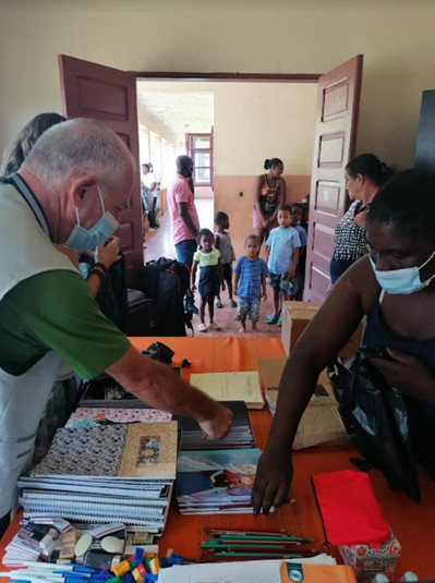 O material escolar (cadernos, lápis, borrachas, apara-lápis e esferográfica) foi distribuído a 80 alunos da escola de Java.